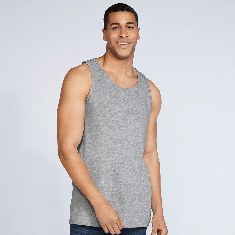 - As part of Gildan’s famed Softstyle® range, this tank top is a wonderful option to include as part of your summer outfit. With prices starting from just £5.59, this is a budget-friendly option that is incredibly stylish. Perfect to wear for sports activities and in the gym, you can even add custom designs to this garment to create something truly special.