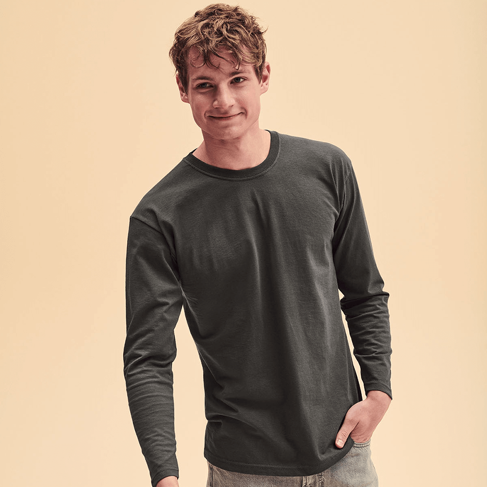 The Fruit of The Loom Valueweight Long Sleeve Tee is an ideal choice for staff uniform, one-off promotions, and corporate events, thanks to its classic fit and lightweight cotton construction. The cotton face features a fine knit gauge, which provides a great surface for decoration. Add your own logo, image, or slogan using our easy design tool.